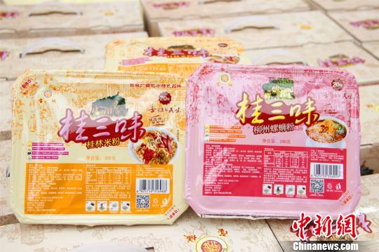 圖為預包裝的柳州螺螄粉、桂林米粉。資料圖 朱柳融 攝
