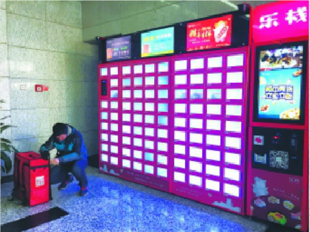 海淀區豪景大廈一層設有一臺樂棧自動售餐機。上周五中午11時30分,北京商報記者趕到這里時,正碰上送餐員完成配送準備離開,F場的88個保溫格中只有4個在用,其余都是空的。而就在同一時段,大廈內不少上班族從附近飯館帶回打包盒飯。