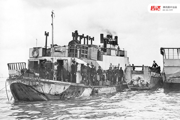 二戰時期英國物資緊缺,幾乎所有食物政府都限量配給,但由于英國自產土豆,并能在相對安全的水域捕獲魚類,炸魚薯條沒有列入限制名單。二戰期間英國人對炸魚薯條的需求比戰前增加了30%,因此這簡直可以稱作是英國的救命菜。在二戰著名的諾曼底登陸日,英國士兵靠“Fish(魚)”對“Chips(薯條)”作為互相確認身份的暗號——當然這個暗號很快就被德國人破譯了。圖為1944年6月14日,諾曼底登陸后,一艘小型登陸駁船在法國海岸附近為英國士兵們提供現做的炸魚薯條。這條船被稱為“海上的炸魚薯條餐廳”。