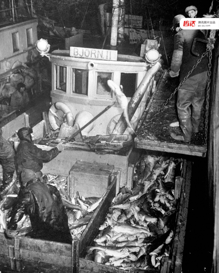 英國人炸魚最愛用的是鮮嫩的鱈魚。18世紀60年代以來,英國人對鱈魚的需求越來越大。當時,歐洲的鱈魚產區主要集中在冰島海域。1944年冰島獨立后,連續幾次擴大領海范圍以保護魚類資源。這遭到了英國的抵抗,兩國海軍為此多次發生互相炮擊的事件,并開啟了持續二十多年的爭奪戰。英國盟友不斷建議英國改變消費習慣,改吃其它魚類,但英國人堅持只愿意吃正統的鱈魚。直到1976年,在北約的調停下,英國才作罷。圖為上世紀50年代,英國漁民在冰島海域捕撈鱈魚。