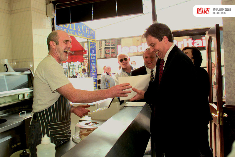 同年的4月14日,另一名英國首相候選人、工黨領袖托尼·布萊爾也在一家餐館外帶炸魚薯條。在那一年大選中,布萊爾最終贏了梅杰。