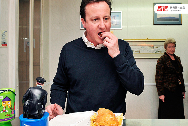 英國現任首相卡梅倫對炸魚薯條情有獨鐘,而每逢度假都會去當地逛魚市場,以致于英國網友都習慣了,每當卡梅倫要去度假了,網友們就會說:又快到指魚的季節了。圖為2010年5月4日,保守黨領袖卡梅倫在坎布里亞郡的一家餐館買炸魚薯條。