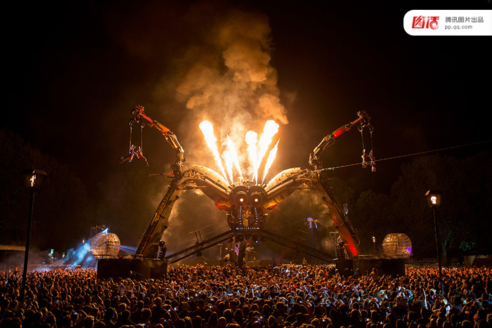 圖為2015年,英國布里斯托,這個焰火秀上會噴火的蜘蛛是以當地炸魚薯條店的廢油當燃料的,是世界上第一個以再生生物當燃料的煙火秀。