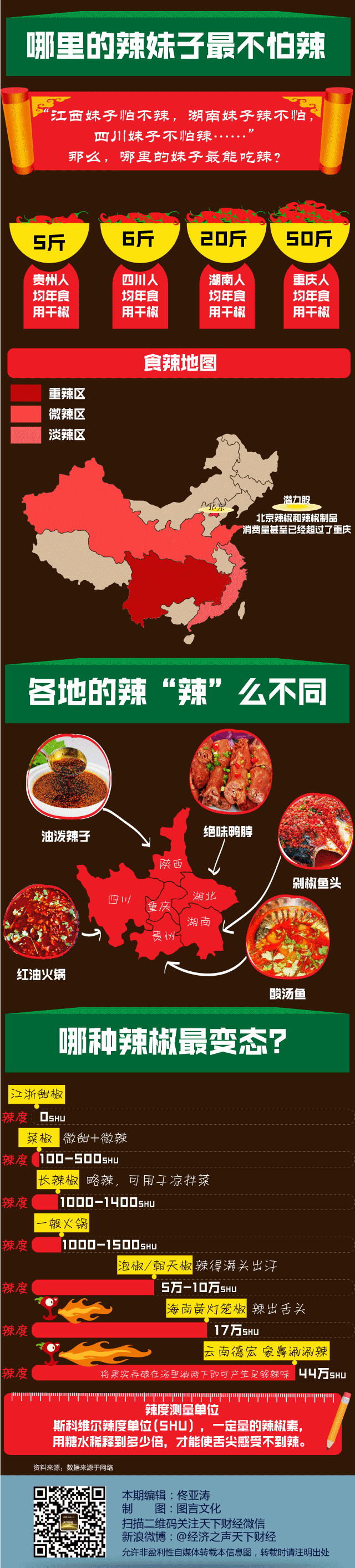 據經濟之聲《天下財經》報道,中國吃辣地圖,重口味不服來戰?我國食辣人群總人口比例超占40%,令人血脈噴張的老干媽每年銷量4億瓶,能繞地球一圈。