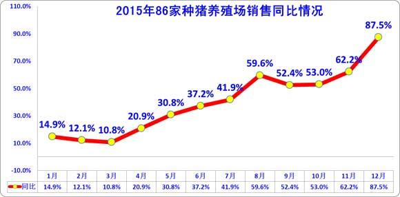 調查全國86家種豬養殖場銷售數據顯示,2015年受高豬價刺激,種豬銷量同比增幅40.9%。,逐季大幅提升,其產下的仔豬會在2016年后期成為育肥豬陸續供應市場,生豬供應量逐步增加,影響豬價下降。