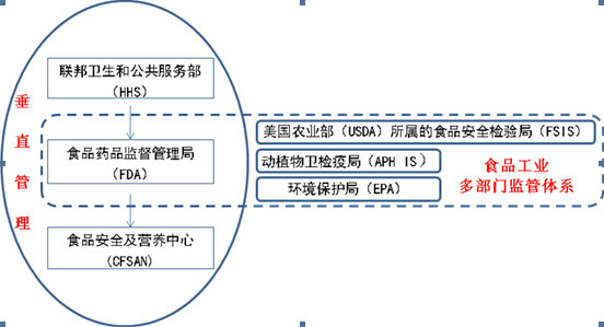 美國現有的食品工業管理機構設置與職能配置主要包括三個層面:一是美國食品藥品監督管理局(FDA)及下設的食品安全及營養中心(CFSAN),二是其他與食品工業管理相關的機構,三是食品工業行業協會。
