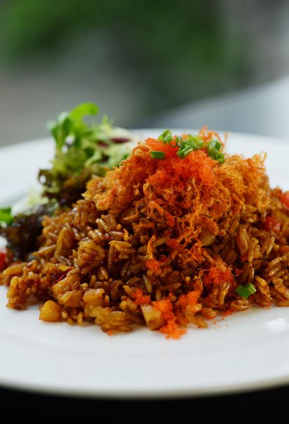 這個夏天,臺灣特色炒飯在藍蛙被賦予了新詮釋,魚籽、蝦干、鮮貝,眾多海中鮮品與米飯香艷碰撞,使得粒粒分明的炒飯包裹上海洋的鮮滋味。不僅如此,洋蔥、紅甜椒、肉松和蔥花的點綴也增添了不少新意,使得口感更為豐富。臺灣和川味兩種奇妙風味互相融合,不僅造就了菜品的盛夏鮮滋,也讓盤中的一蔬一飯都唇齒留香。