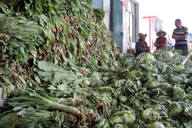 大量蔬菜堆積,無人問津。
