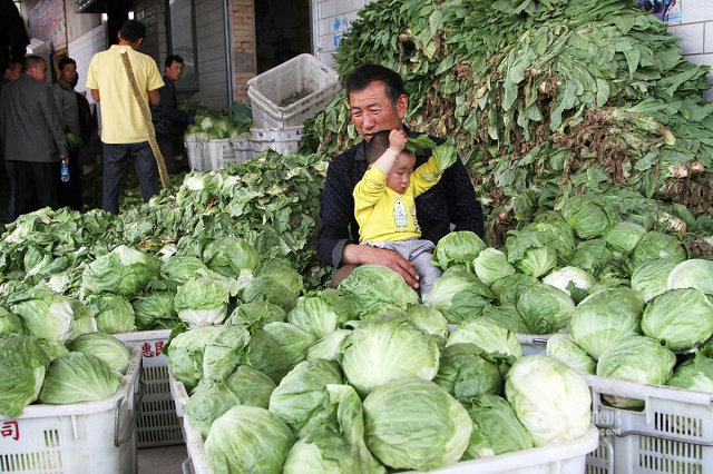 蘭州菜市場,大量蔬菜堆積。