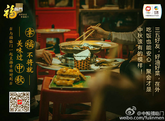 福臨門在此次中秋活動中,以“家香味”系列作為與消費者建立情感溝通的紐帶,通過中秋節思鄉情節的升華,進行“幸福時刻“的走心營銷。以三張中秋節預熱海報,聚焦思鄉、團聚、幸福三大消費者情感訴求,同時,將三種不同的中秋節過節情景進行呈現:一個人的中秋也要精彩、聚會才是中秋節該有的模樣、家人團聚時的笑容才是最好的犒賞,并與話題#幸福不將就 美味過中秋# 產生強關聯,倡導無論何種方式過節,都要好好吃飯,幸福過中秋!情感化的場景海報,打造溫馨的中秋氛圍,與廣大消費者建立情感聯系。