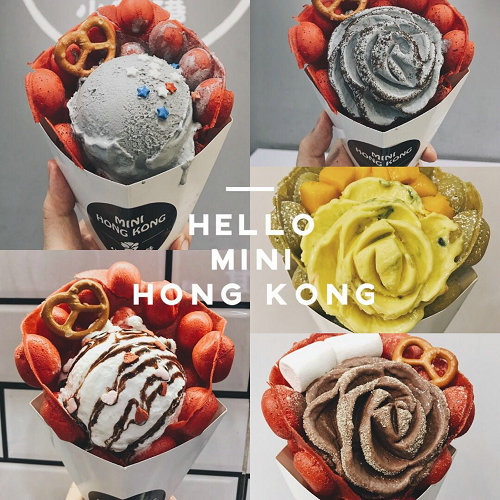 當然,除了口感好,顏值也很重要!不同于一般的冰激凌球,MiniHongKong的Gelato還有花朵造型,上面或是撒上形狀各異的翻糖,或是淋上一層薄薄的巧克力粉。如果想嘗點特別的,還可以試試雞蛋仔、菠蘿包,共同組成具有港式風味的蛋仔冰激凌或是冰激凌漢堡。