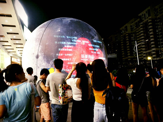 除了借勢外部IP,2017年華美還延續推廣了品牌自有“超級月亮”IP,直徑范圍在6-10米的三個仿真“超級月亮”曾在去年中秋期間空降深圳、佛山和武漢三地,足有三層樓高的體積,多次刷爆消費者朋友圈。