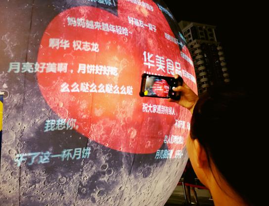 而“超級月亮”也不僅是拍照背景——消費者可以通過手機掃描二維碼進入活動頁面,便可以寫下祝福話語,“超級月亮”便可通過最新H5技術將話語以“彈幕”形式投影到“月球表面”。