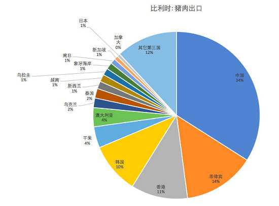 比利時豬肉供應商們向全世界60多個國家出口豬肉,其中德國是其最大的豬肉出口目的地國;而在歐盟市場之外,中國已成為了比利時豬肉最大的出口目的地國。