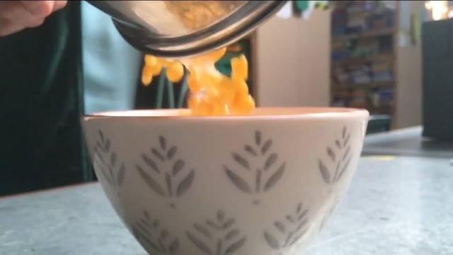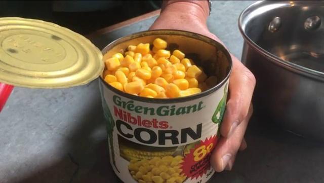 甜玉米罐頭打開后就散發出濃重的酸味,倒出時湯汁已經呈粘稠狀。該慈善機構的合伙人、籌款經理Helen