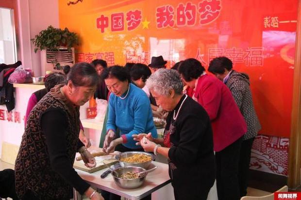 社區愛老敬老的民風一直很好,還產生了多名省級孝星,如今很多年輕人外出打工,社區里老年人群體生活卻很充實,經常聚在一起熱鬧。圖為村民利用各家湊起來的食材包餃子。