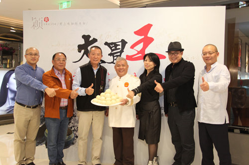 嘉賓左起:上海梅龍鎮酒家股份有限公司副總經理張宏昌先生、上海梅龍鎮投資股份有限公司副董事長孫林全先生、上海梅龍鎮(集團)有限公司董事長王邦煜先生、中國烹飪大師辛國祥大師、北京良田文化傳播有限公司董事長黃熙睿女士、著名美食作家及評論家老波頭先生、上海梅龍鎮(集團)有限公司總經理熊佳俊先生