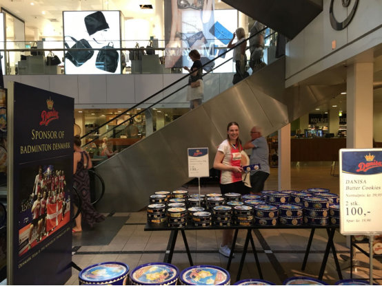 自2015年起,皇冠曲奇正式成為丹麥國家羽毛球隊的官方合作伙伴,贊助了2015、2017年蘇迪曼杯丹麥羽毛球隊、2016湯尤杯丹麥羽毛球隊、2015、2016、2017年丹麥羽毛球公開賽以及部分丹麥隊運動員和教練。去年10月,筆者有幸前往丹麥第三大城市歐登塞,觀看了當地舉辦的由皇冠曲奇冠名的2017丹麥羽毛球公開賽,并出席了現場新聞發布會,和皇冠曲奇出品方——丹尼詩特色食品有限公司CEO Erik Bresling以及丹麥羽毛球隊CEO Bo Jensen作了交流。Erik透露,2017年皇冠曲奇代替YONEX,成為了丹麥羽毛球賽的總冠名商。同時,這也是該項賽事史上罕見地以本土品牌為總冠名商的案例。