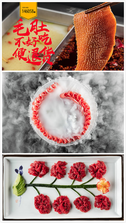 除了味道 ,特色菜品自然也是衡量一個火鍋好吃與否的第二大標準了。在川壩子老灶火鍋,幾十余種新鮮菜品您一次絕對嘗不完。葷素菜品各式各樣,除了常見的火鍋單品,這里還有很多特色菜。其中,最具人氣的當屬川壩子老灶火鍋的鎮店之寶:明星毛肚,具有“分量足、大片、新鮮”等特點,15秒速燙清脆味美,讓人流連忘返!任何人,覺得味道不好即可退菜,有鎮店毛肚就是這么自信。據說,川壩子老火鍋全國門店每年售出毛肚高達146058份,可繞成都X圈。(自行腦補,沒算過)