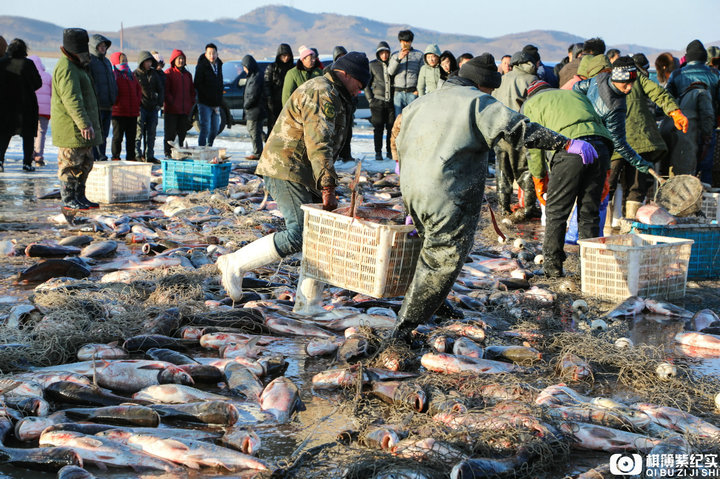 冬捕人很辛苦。從凌晨4點開始下網,到晚上7點10萬斤魚全部出水,要15小時在零下20多度的冰面上作業。