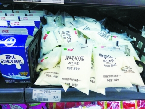 在消費觀念轉變下,消費者對乳制品的消費也在提升。在各大賣場中,冷柜中的鮮牛奶愈加受到消費者喜愛。消費者購買牛奶圖的是新鮮,巴氏奶由于儲存時間短,被看做是對鮮奶的最好詮釋。但是,目前一些常溫奶也“擠”進了巴氏奶陣營。北京商報記者在走訪中發現,與巴氏奶“比鄰而居”的通常是一些透明包裝袋的牛奶產品,這些透明包裝的牛奶就是科迪乳業生產的小白奶。