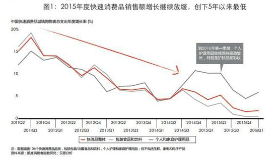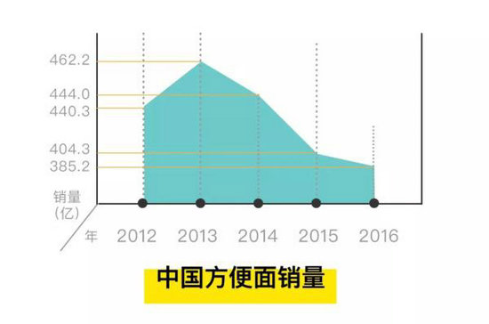 據管理咨詢公司貝恩 (Bain & Company)和全球市場研究機構Kantar Worldpanel報告稱2015年中國城市快消品消費同比下滑0.9%,其中方便面下滑12.5%