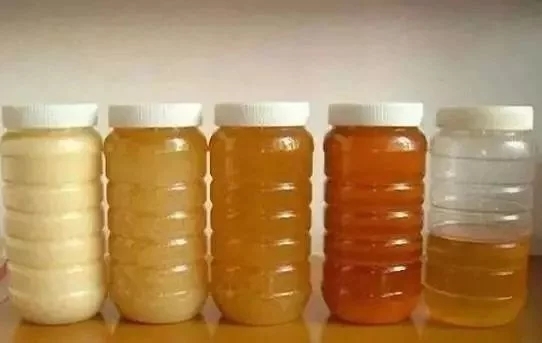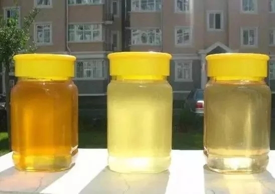 因為純蜂蜜的成分含有大量的生物酶、蛋白質、礦物質、花粉等等,所以蜂蜜看起來并不是很通透,會有些渾濁。如下圖的3瓶蜂蜜都是真蜂蜜,在陽光下顯得不通透有渾濁。而假蜂蜜由于摻加了大量的糖漿,成分單一,就顯得很通透沒有渾濁感。我們在購買蜂蜜前,可以拿起瓶子對著燈光或陽光看看。