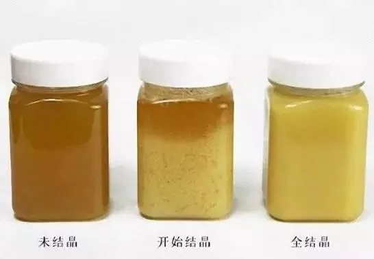 除了少部分蜂蜜不易結晶外,大部分蜂蜜會在氣溫14度以下開始慢慢結晶。在冬天天氣冷的時候,蜂蜜放在室內看到結晶現象,在夏天我們可以把蜂蜜放進冰箱冷藏,觀察是否有結晶,能結晶的可以肯定是真蜂蜜。真蜂蜜的結晶柔軟、細膩、均勻,用手捏沙粒感易化。有的假蜂蜜也會出現類似結晶物,其實這是沉淀物不是結晶,用手捏有沙粒感會硌手不融化。