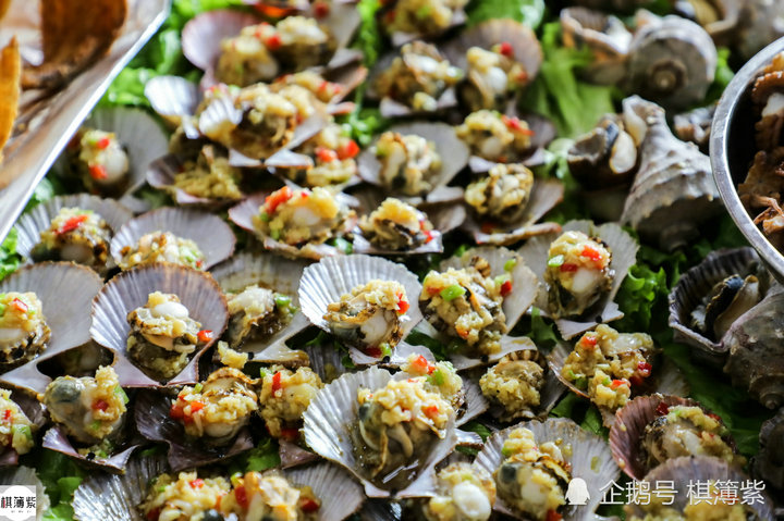蒜蓉扇貝。在東北海鮮的主要集散地遼寧東港,當地人對海鮮的傳統吃法是“簡單粗暴式”,想吃哪樣就單獨吃,很少有人把十幾種海鮮拼成工藝品的樣子先賞后吃。海鮮宴這種文藝范吃法是近些年才有的。