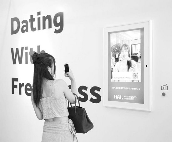 Freshness”主題藝術影展,以“與新鮮約會”為主旨,通過照片的形式展現人與食物之間的關系,提倡人們吃得更加健康、積極!拔易哌^大半個世界,現在想像三文魚一樣回溯到原點”“她說我是沙拉里的西蘭花,是離不開的基本款”“食材的力量俘獲了嘴巴,于是想說的話化成了眼神”……影展現場的黑白照片中,每個人物嘴里都咬著一款食材,通過周圍的文字注釋,展現每個人物與食材之間千絲萬縷的聯系!拔蚁M业奶梢院煤贸燥,不要再吃那些對健康不利的食品,因為那些配不上她”“我發現身邊大部分人都不喜歡吃胡蘿卜,所以我覺得如果我吃了,一定很厲害”“我從小到大就喜歡吃番茄炒蛋,因為有家的味道”……現場播放的宣傳片里,滾動展示著人們通過“吃”希望表達的感情與傳遞的信息。