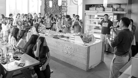 “我們想告訴大家的是,藝術并不是遙不可及,而是無所不在、可以觸碰的。生活中總有一些富有想像力和創造力的藝術品不斷出現,它再次證明了人們可以從任何事物中創造藝術、創造美好的感受!崩罴淹┱f,令她沒有想到的是,通過與現場觀眾的交流,這次藝術展還讓她對國內的觀眾群體有了新的認識:“我們把觀眾反饋按年齡做了分類并發現一個很有意思的現象:15—23歲的年輕一代認為展覽非常應景,具有傳播性,滿足了社交的需要;23—28歲初入職場的人對健康提出了更多要求,比如口味清淡、甜度降低等;30歲左右新手爸媽更加關注食材的衛生與安全,也更愿意了解食材來源等信息;年紀更大的人群通常不購買產品,但是會來‘喝一杯’,把這里當作休閑聊天的好場所。”食物能夠毫無障礙地拉近人與人的距離,讓人與人之間有更多的交流互動,這讓尚處于創業狀態的李佳桐對市場有了更深的理解。