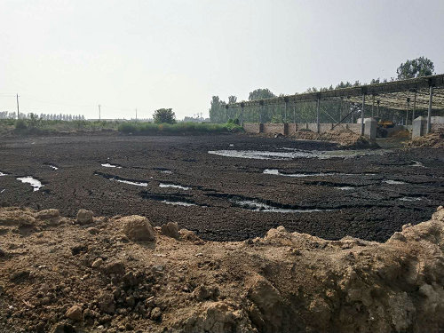 下午3時,記者前往稷山縣清河鎮北陽城村的晉龍集團晉華養殖場,該場規模略小于西位雞場及吳囑雞場,但污染問題依然嚴重。該場東側同樣存在糞便露天堆放、污水橫流的狀況。記者以要做雞糞加工為由和幾位處理雞糞的雞場員工聊天,他們告訴記者,“你要做就把雞糞拉遠點,這里環保查得嚴。場子大沒事,但你在這里做肯定不行”。