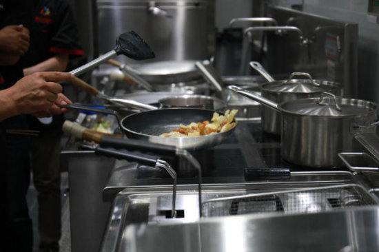 研發中心坐落在北京的西北邊,依山傍水,風景秀麗。來到禧云產品研發中心,劉女士和其他同行的人都深感震驚,他們沒想到這家成立僅一年的公司竟在產品研發上下這么大血本,專業度、標準化程度如此之高。中心內部各類設備齊全,產品研發間、后廚儲存間、設備展示間、廚電展示間、檔口示范區、試吃區分明,明廚亮灶,裝修時尚。