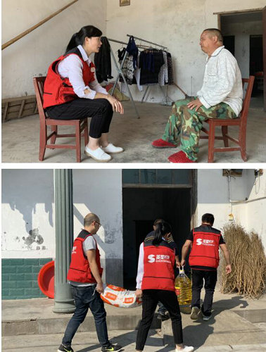 長沙美菜志愿者為余新南送來了美菜商城的大豆油、大米。余新南說:“雙目失明后,家里很久沒有來過這么多人,黑暗讓我每天感到恐懼。謝謝你們來看我,謝謝美菜,我會好好生活的”。