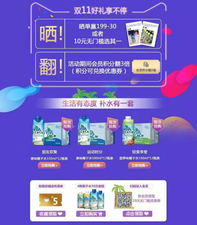 可以說,無論從平臺實力、產品特性,還是消費者認可度等方面來看,唯他可可作為全球知名的椰子水品牌,此次雙十一的表現必然萬眾矚目,2018年,唯他可可熱度正強,相信在此次雙十一中,他們定會再接再厲,再度登上更多行業銷售榜單,拔得流量和銷量的雙頭籌。