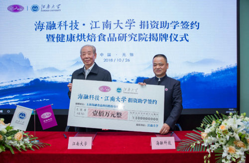 海融科技·江南大學捐資助學簽約暨健康烘焙食品研究院揭牌儀式