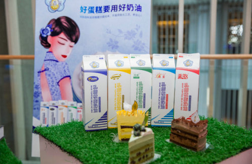 經過反復試驗,2018年,以“飛青花”為品牌的非氫化系列奶油成功上市。該奶油的熱量、脂肪、膽固醇含量比動物奶油更低,更加符合人們對于食品健康的要求。該系列產品在操作性、化口性、穩定性等方面都趨同甚至優于現有產品。