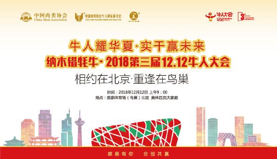 2018年12月12日上午9:00,中國-北京國家體育場(鳥巢)奧林匹克大家庭,由中國肉類協會主辦,中國肉類協會牛人俱樂部分會北京區承辦,西藏自治區當雄縣凈土產業投資開發有限公司、雪域凈土納木措(北京)國際牦牛有限公司鼎力戰略支持的中國牛羊肉行業年度盛典“牛人耀華夏,實干贏未來”納木錯牦牛·2018第三屆12.12牛人大會將盛大啟幕。