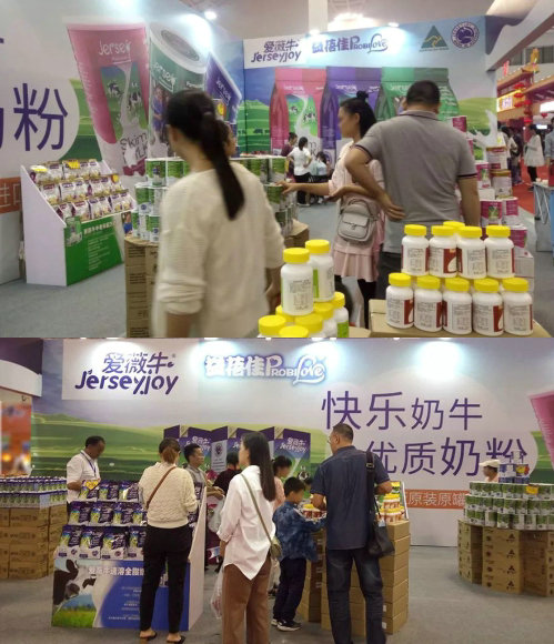 “快樂奶牛,優質奶粉”,愛薇牛益蓓佳攜營養乳品系列、燕麥、軟糖等快樂亮相此次博覽會,撲鼻的醇美乳香吸引了眾多參展者聚集圍觀,問詢和購買不絕,人氣爆棚。