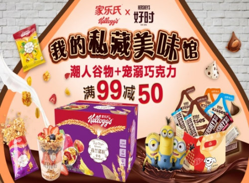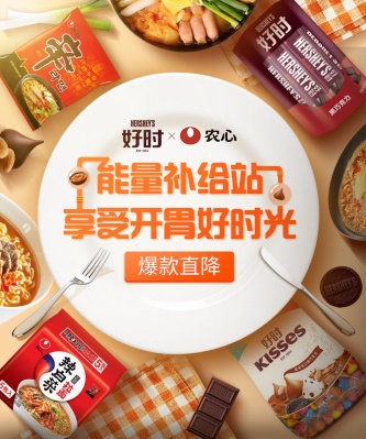 為了在雙十一期間產生更深遠的影響力,好時加入了另一大消費品行業的熱門趨勢——與家樂氏、農心、格力高和不凡蒂梅勒,開展了諸如多品牌零食包等多種跨界合作。跨界合作打通了品牌間的壁壘,互通品牌流量,讓消費者能夠自由的搭配商品,最優化零食購物體驗,真正使消費者和品牌實現雙贏。