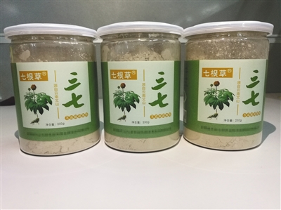記者走訪多家大型中藥材市場發現,市面上的三七粉每克價格在3塊錢左右,而北京貞草堂大藥房有限公司所售的“三七粉”,每克只有3毛錢左右。