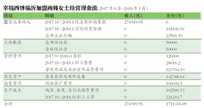 “招商會現場發給我們人手一冊全國城市合伙人招募書,書上明確寫著三線城市總投資80萬元,半年可實現豐厚盈利,可開業一年來我陸續投資了300多萬元,收入100多萬元,200多萬虧在里面。”韓女士稱,據了解幸福西餅全國200多家門店80%都在虧損,這并非一個正,F象,不少加盟商已萌生退意,其中不乏北京這樣的一線城市。
