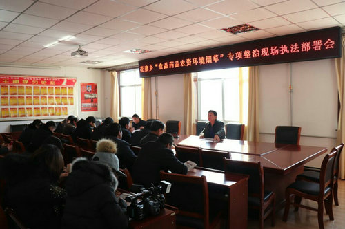 歲末年初,為保障兩節全鄉人民食品安全、生產安全,2018年12月26日,在鄉黨委的統一部署安排下,由鄉黨委領導帶隊,食藥所、工商所、派出所、農業辦、畜牧站五部門組成的聯合執法隊,對轄區集貿市場、趕集流動攤點進行集中專項整治。