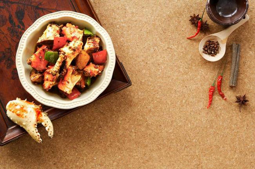 3.將甜面醬、花椒、干辣椒、八角、桂皮、姜黃粉和糖炒出香味后,放入王蟹、土豆和青紅椒炒勻,加適量水略煮后加鹽調味即可。