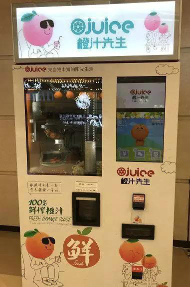 近年來,各大商場的角落里悄然出現了一批智能方便的橙汁自動販賣機:天使之橙、橙汁先生、橙市超人……明亮的外觀、新穎的操作方式,一出現便吸引了很多人的目光。從機器的玻璃窗中可以看到,交費后,數枚橙子將自動落下,由機器現場榨汁,一杯新鮮的橙汁由此“誕生”。