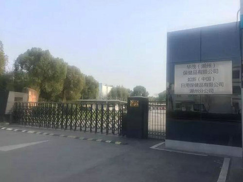 錢報記者在如新的官網上查到,如新在湖州有一個生產基地——如新華茂保健品生產基地(湖州),涉事的果汁正是這里生產的。