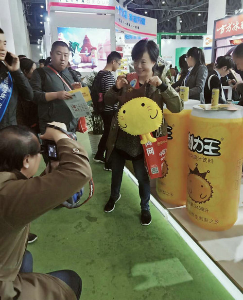 糖酒會現場,各參展商想盡辦法,產品琳瑯滿目,各領風騷!而在繁花似錦的會展現場的一角,位于飲料專區6號館的刺力王展示區門庭若市,極具特色的 少數民族風情,可愛的刺力王卡通形象,讓參展者們紛紛駐足拍照留念,參觀、品嘗者源源不斷!