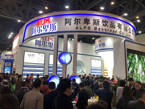 同時,借勢百屆春糖的歷史性榮耀時刻,很多展商推出了全新產品。在飲品專區各家參展企業陳列的產品中,剛剛完成包裝升級的阿爾卑斯吸引了國內外經銷商友人的駐足品嘗。展位上阿爾卑斯延續了一貫的藍色調時尚風,除了阿爾卑斯天然礦泉水和紛菓系列果汁系列產品,本次糖酒會有兩款最吸引經銷商的產品——阿爾卑斯天然蘇打水,ALPS天然礦泉水!