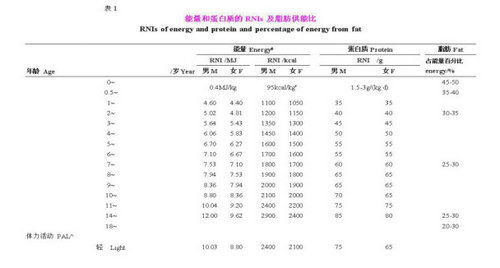 ▲《中國居民膳食營養素參考攝入量表》圖