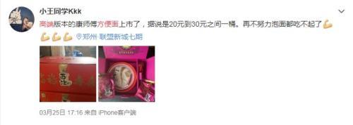 不僅如此,據媒體報道,康師傅“Express速達面館”還于今年春節前推出了四款“福祿壽喜”富貴面,同時也是限量版,只出售1888份,預售價格為268元4盒。